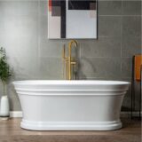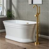 - Top quality: brushed Gold finish for resists tarnish and corrosion; single handle easy operation on flow rate and temperature control; drip free ceramic disc cartridge; high-arch spout design with 360° rotation offers more room for bathing activities