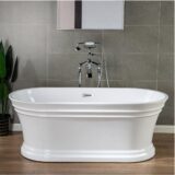 Contemporary freestanding tub filler faucet with hand shower is made from solid brass which is one of the most durable and reliable material that frequently used in plumbing industry better for hard water use and less likely to corrode or rust after years. Drip free ceramic disc cartridge with built in sediment filter; durable seals and ceramic shell prevent leaks and promote smooth operation and functionality for over 500,000 uses. It is more reliable and durable than any lower cost washerless or ball valve cartridge that widely used in plumbing industry. Single lever handle allows flow rate and temperature control in one hand. High quality NEOPERL aerator control the straightness and diameter of the water stream while reducing noise, splashing and side spray by aerating the water as it exists the faucet. Also they save water, reduce energy costs and filter sediments while meeting local plumbing code. Easy removal to clean any debris or mineral on screen after daily use and reuse it. The dual functionality of our detachable sprayer is the perfect tool for all your bathing needs including rinsing your hair, washing children or pets and also for keeping the tub clean after use. When finished, simply slip the sprayer back to its secure dock. Our high-quality brass tripod base, which comes standard with expansion bolts for install on concrete, allows for easy and stable installation while seamlessly allowing for water supply to pass through.